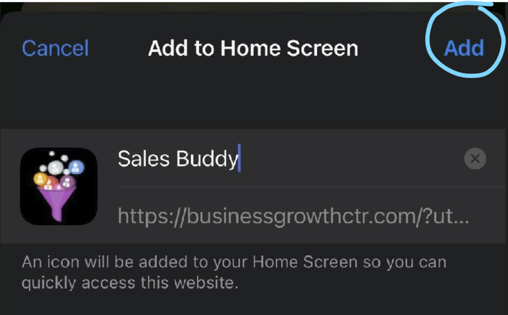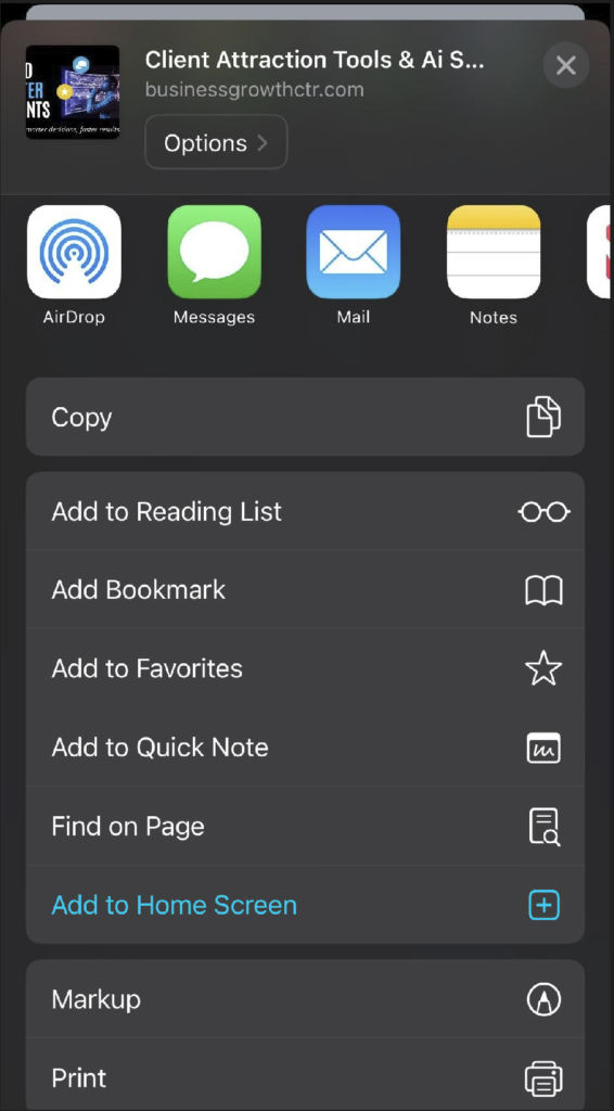 2. Scroll to and choose the ‘Add to Home Screen‘ option
